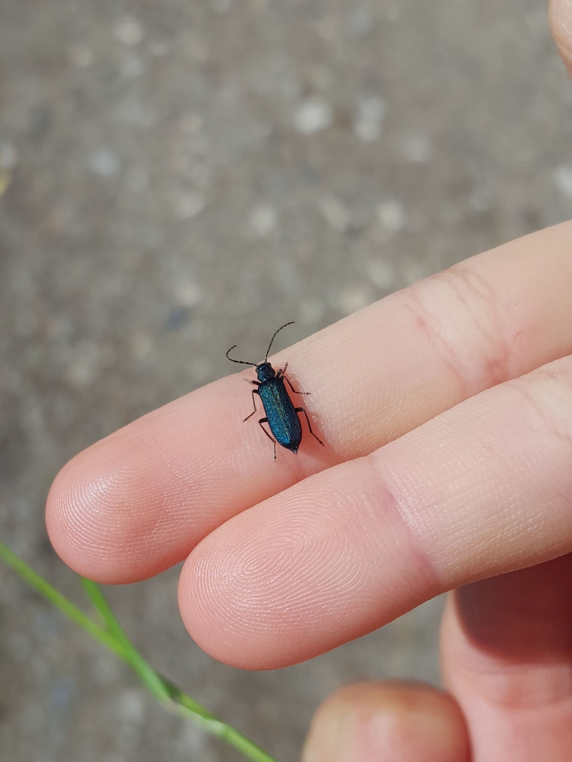 Vi fandt Blå Malakitbille (Dasytes caerules) på Amager Fælled.